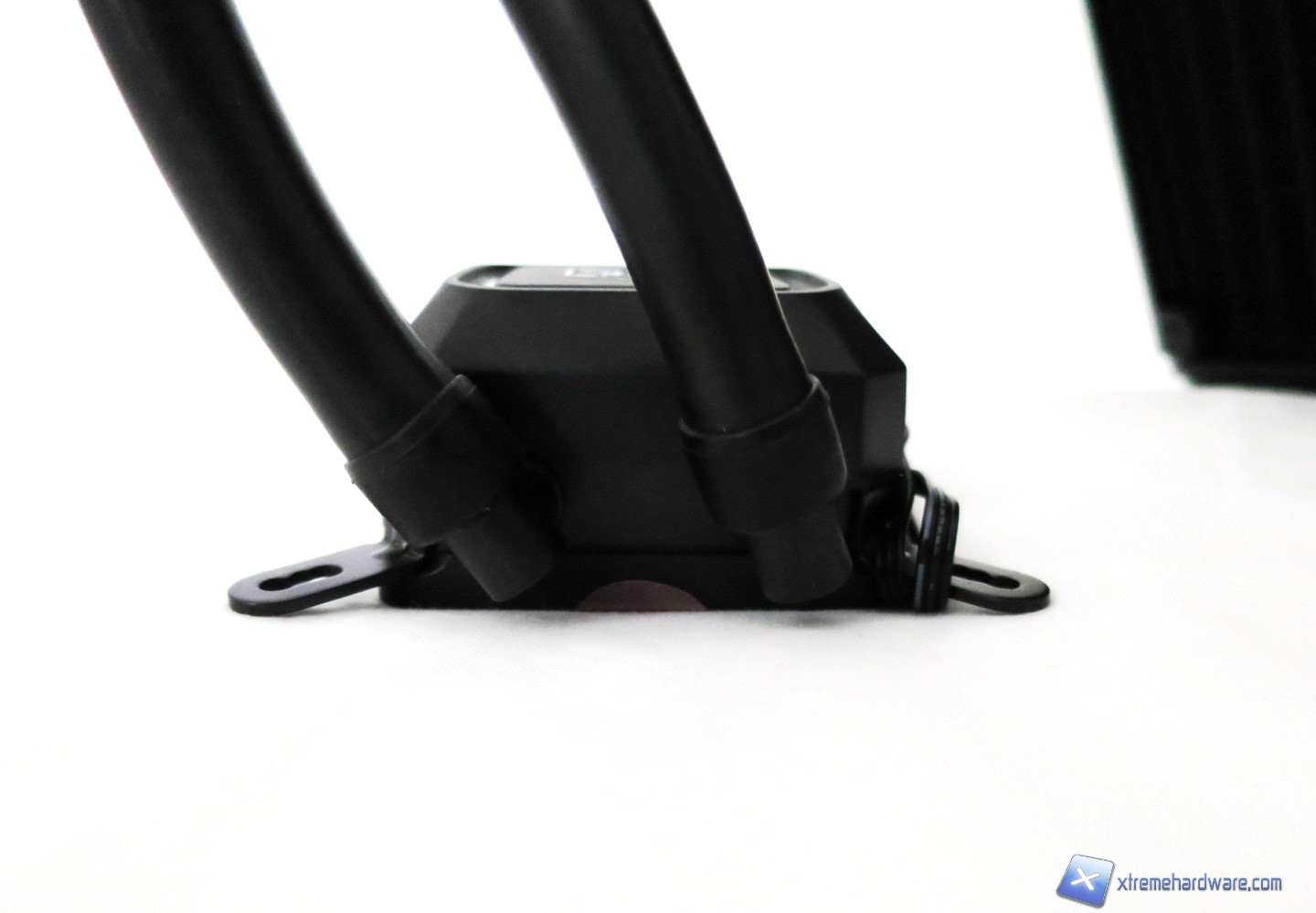 Proseguendo, passiamo ai tubi che sono in al solito in gomma con spessore esterno di 12mm e interno di 10mm. La pompa adottata dai due modelli della serie Tundra riesce facilmente a gestire radiatori da 120mm e da 240mm dunque SilverStone ha semplicemente cambiato dimensione del radiatore mantenendo inalterato il design degli altri componenti. I tubi sono sempre caratterizzati da una struttura intrecciata interna ed hanno una lunghezza di 310mm.